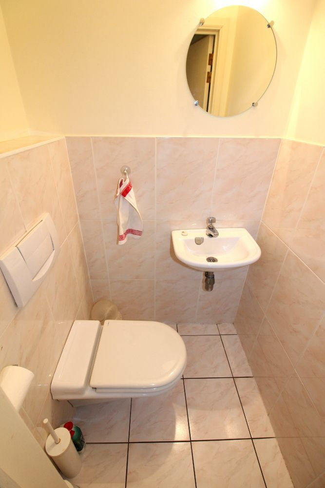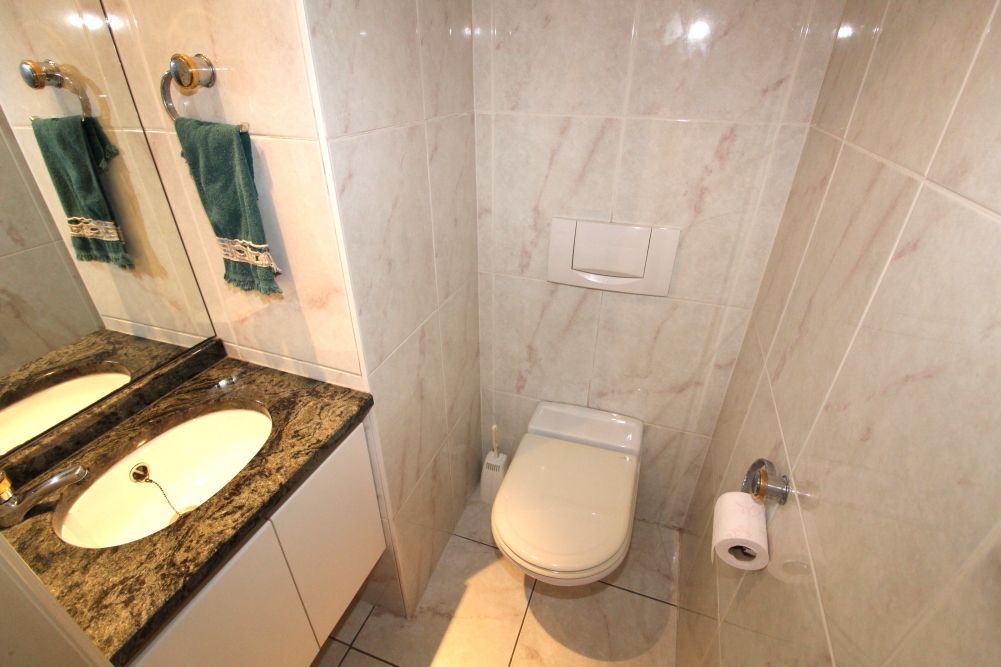 Rechts van de inkom kom je in het slaapgedeelte: een eerste kamer (15 m2) met balkon, een tweede kamer (12 m2), en een derde schitterende master kamer (17 m2) met ensuite (bubbelbad, toilet en badmeubel met twee lavabo's) en dressing (6 m2). Tevens bevindt zich hier een wasplaats (5,2 m2) met warmwaterboiler en de nodige aansluitingen voor wasmachine en droogkast, een tweede toilet met lavabo, een tweede badkamer met een Hammam stoomcabine en lavabo.